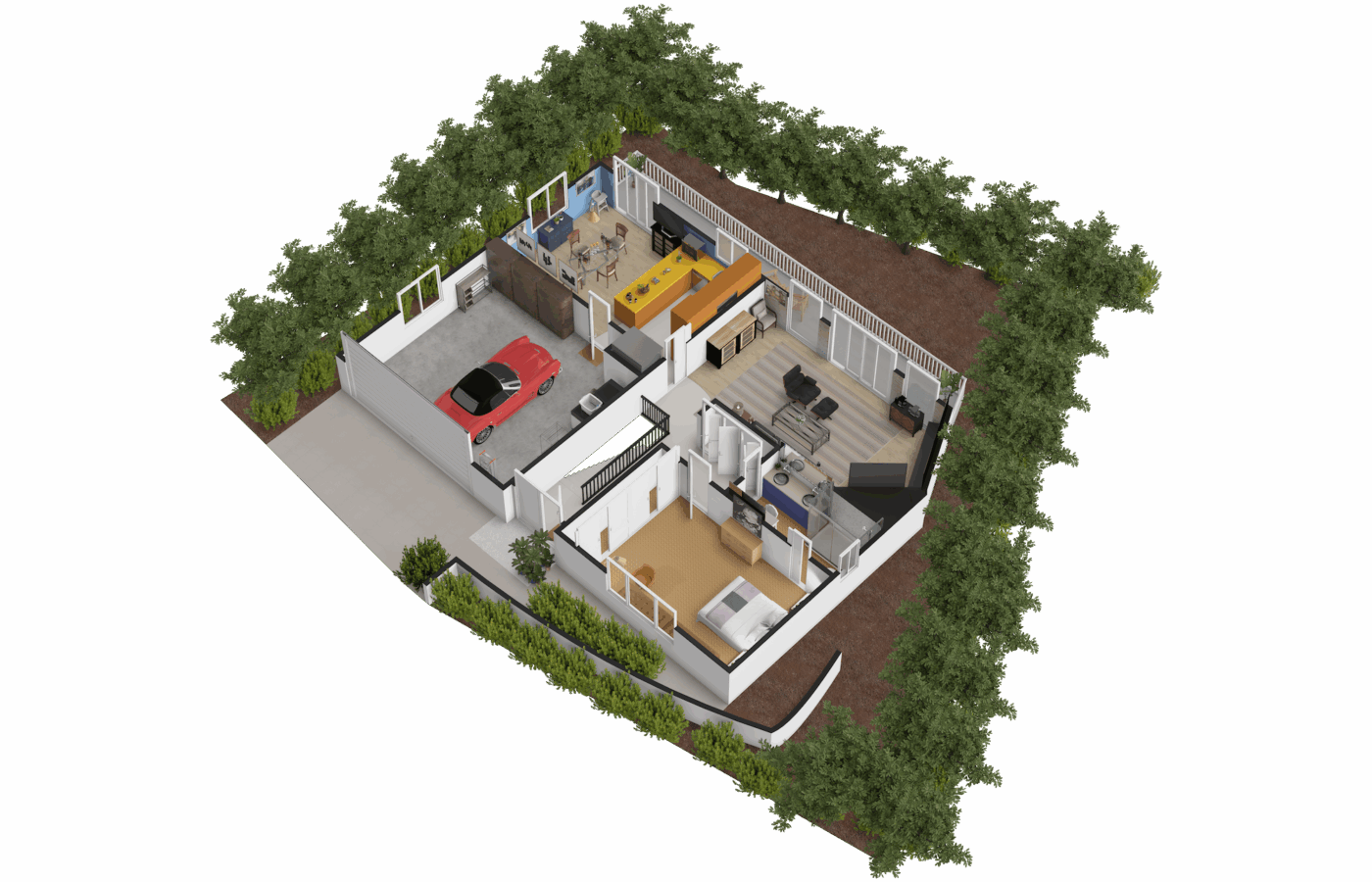The home has been thoughtfully upgraded while retaining its original mid-century architecture. It offers three bedrooms, two bathrooms, and a functional layout that includes a living room, kitchen, dining area, and family room, totaling approximately 2,340 square feet of living space.