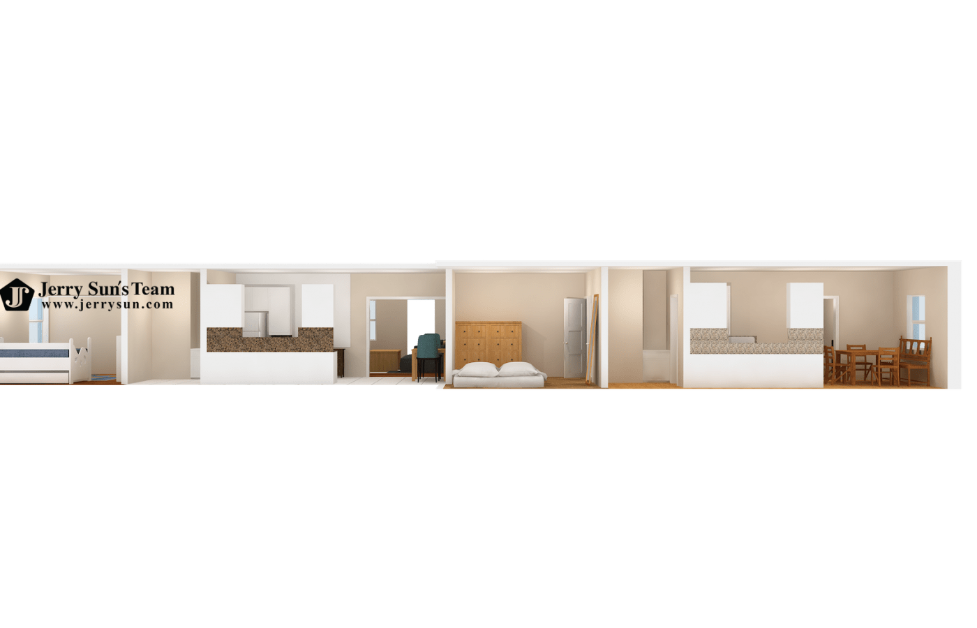This tenant-occupied unit features two bedrooms and one bathroom, a living room with hardwood flooring throughout, a kitchen with granite countertops, a dining room with tile flooring and wall-mounted A/C.