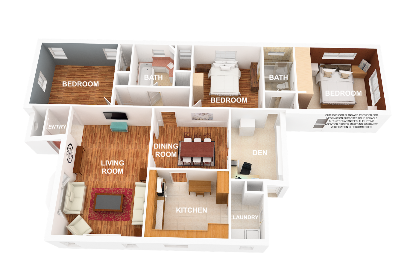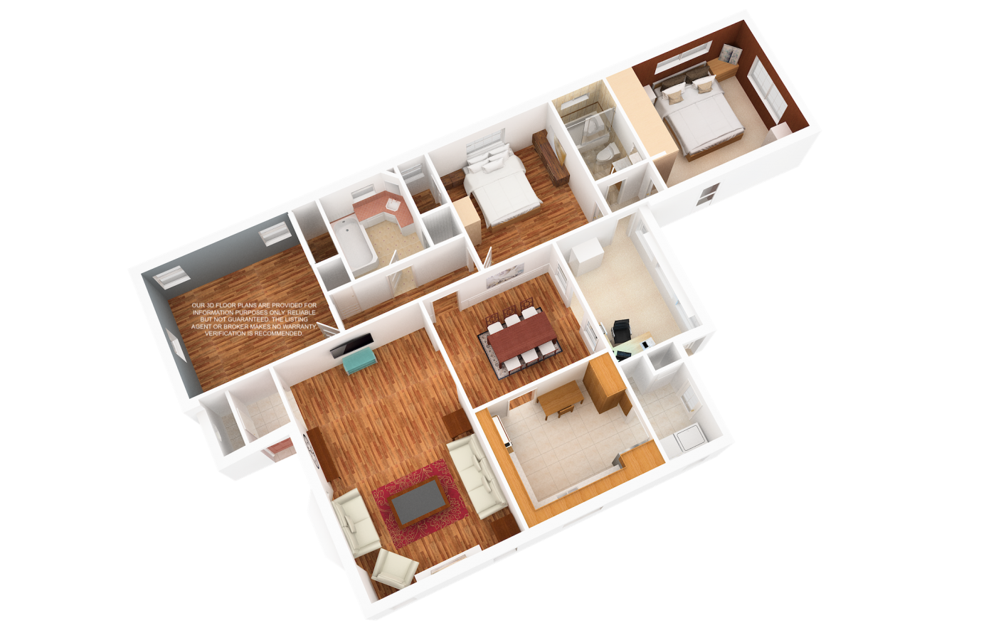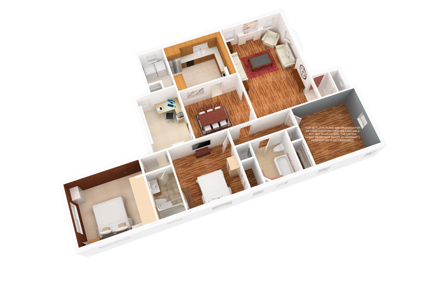 OUR 3D FLOOR PLANS ARE PROVIDED FOR INFORMATION PURPOSES ONLY. WE ADD THE FIXTURES, TEXTURE, COLOR, AND FURNITURES TO MATCH EVERY DETAIL OF THE HOUSE’S ORIGINAL INTERIOR STYLE. BUT WE MAKE NO WARRANTY. FOR INDEPENDENT PROPERTY SIZE, DIMENSIONS, OR ANY OTHER DETAILS, VERIFICATION IS RECOMMENDED. 我們團隊所繪製提供的室內3D立體格局圖及尺寸,所有細節是根據實際擺設和真實格局去繪製,但不提供任何保證僅供參考使用,買主請自行核實。